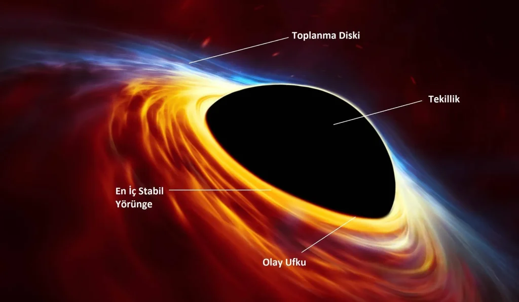 | Kara deliklerin evrende bıraktığı etkileri | Kütle çekim etkileri ve uzay-zamanın bükülmesi ışığın yönünü değiştirebilir; diskler ve jetler madde ile enerji dönüşümünü gösterir; bu etkileşimler evrende kara deliklerin dinamik rolünü gösterir. |